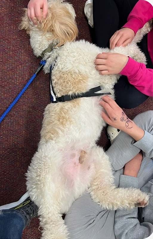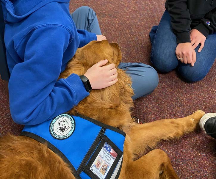 Four dogs from our Therapy Dog group went to Whitewater Middle School on Friday, March 15, 2024, to provide comfort and support to the students and teachers who were dealing with the unexpected death of a student earlier in the week.