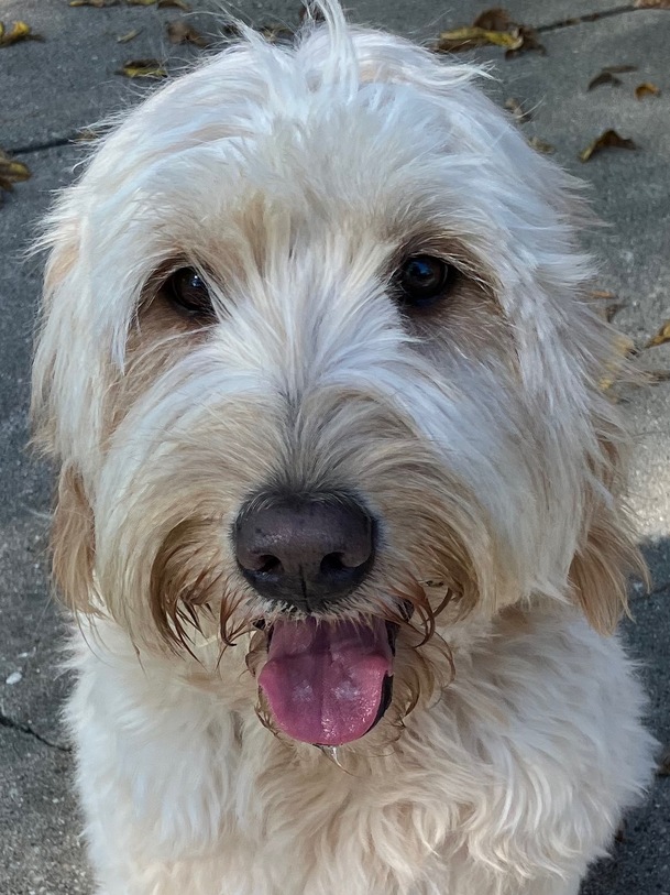 Odin is a cream-colored labradoodle who loves everyone. He's never met someone who doesn't adore him, and he gets along well with other dogs too. His favorite things in the world are balls, treats, and meeting people. He can't wait to meet you!