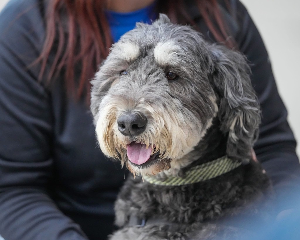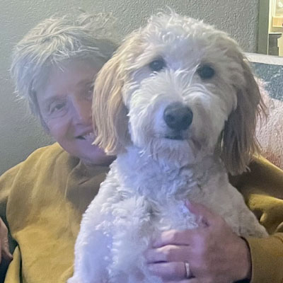 Hi, my name is Finn and my mom’s name is Mary. After the loss of her daughter Lora to cancer in 2020, Mom was overcome with grief and felt no purpose or belonging. In 2022, while looking at Bernedoodle puppies online, she felt joy again. Through a series of events she believed guided by Lora, Mom was shown pictures of me and my brothers. When she saw me, she knew I was meant for her. With some nudging, Mom’s wife Dee agreed to welcome me home. When I first met Mom, I touched her hand with my nose to let her know I was here to help. Lora knew Mom needed me to love and care for to ease her sorrow. Now, as a therapy team, Mom and I hope to bring healing by helping others. We are grateful to the Southern Wisconsin Canine Therapy Dog Association for this opportunity and for the love and support we’ve received.