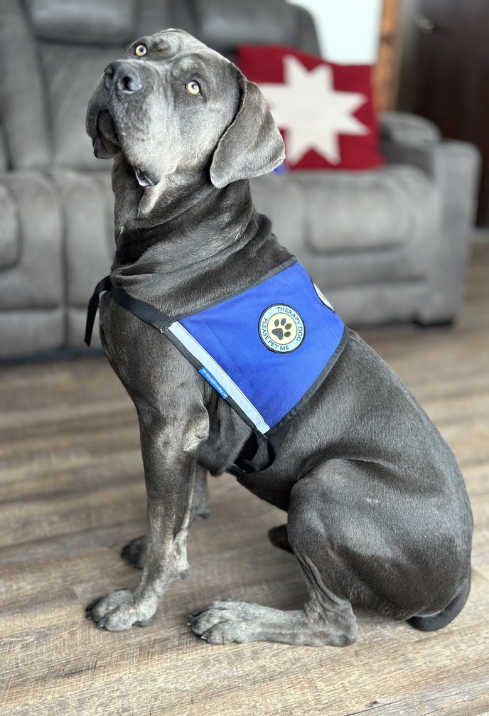 Murphy was born 11/28/21 in Missouri, he is an English Labrador Retriever. His nickname is “BIG MURPH”. He loves swimming, his blanket, squeaky toys, playing with other dogs and people. As a therapy dog he loves spending time with children and getting love and pets from anyone.