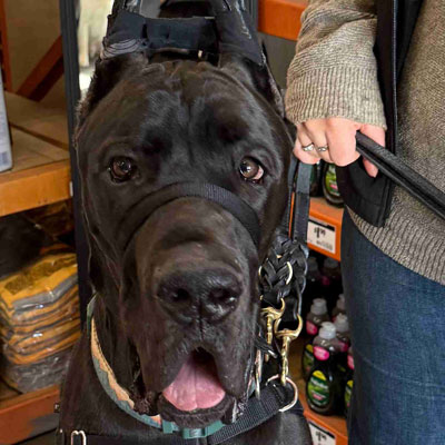 Hi, my name is Rocco! I live on a horse farm with my pawrents. I am a Cane Corso, around 130lbs. My Birthday is June 12th, 2022, and I like to celebrate it with all my friends. I have a lot of friends – humans of all ages, cats, dogs, chickens, and equine! I always want to make more friends. I know I can look intimidating, but I have always had a sweet disposition. I am the definition of a gentle giant. My pawrents and trainer have taught me to continue to be kind and thoughtful of others. I take treats gently and I love to soak in all the affection I can get. When I’m not keeping watch over the farm, I’m going for walks and watching tv with my dad. I also enjoy going to visit retirement centers, juvenile centers, and hospitals, and love to take my pawrents shopping in various stores. I love visiting new places. I look forward to every adventure. Love and God Bless, Rocco