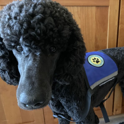Greetings I was born 8/27/2023 and I am a Standard Poodle that often has a variety of haircuts so I don't always look like my breed. I became a Certified Therapy Dog on my first birthday. I enjoy being outdoors and on new adventures. I am happy to give kisses to anyone who comes down to my height. I love all people, especially children as well as other dogs. I look forward to meeting you.