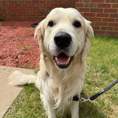 Peanut is a sweet and affectionate five-year-old Golden Retriever. She has been certified as a therapy dog since 2021 and has spent most of her therapy days at Edison Middle School in Janesville. Peanut enjoys traveling, especially to Upper Michigan, swimming, playing fetch, and hiking. She loves being around people of all ages but seems to have a special understanding and connection to young adolescents.